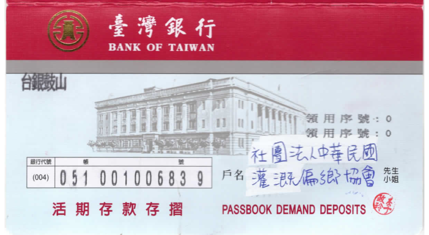 戶名 : 社團法人中華民國灌溉偏鄉協會